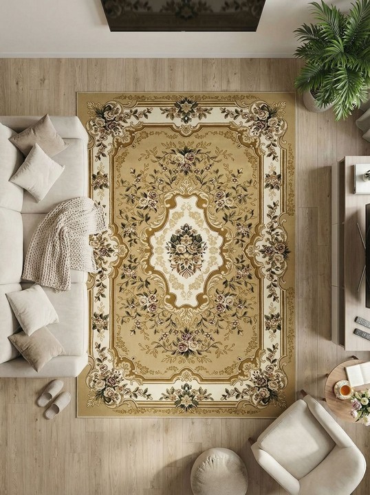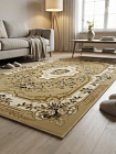 Бежевый российский прямоугольный ковер привлечет ценителей прекрасного. Цветочные узоры оригинально переплетены в витиеватые орнаменты. Рисунок выглядит шикарно. Средняя плотность плетения 281600 узлов на кв. м. позволяет стелить ковер в помещениях с высокой проходимостью. Предоставленные размеры тоже подойдут для любых комнат: от 0,6 x 1,1 м до 3 x 5 м. Крученая нить из полипропилена используется для создания качественных ковровых изделий. Десятимиллиметровый ворс на ощупь приятный и мягкий. Такой ковер легко содержать в чистоте. Ворсинки отталкивают мусор и пыль от поверхности. Достаточно пройти раз в неделю пылесосом. Даже в детской комнате можно не бояться стелить это изделие. Любое грязное пятно можно смыть водой или чистящим средством.