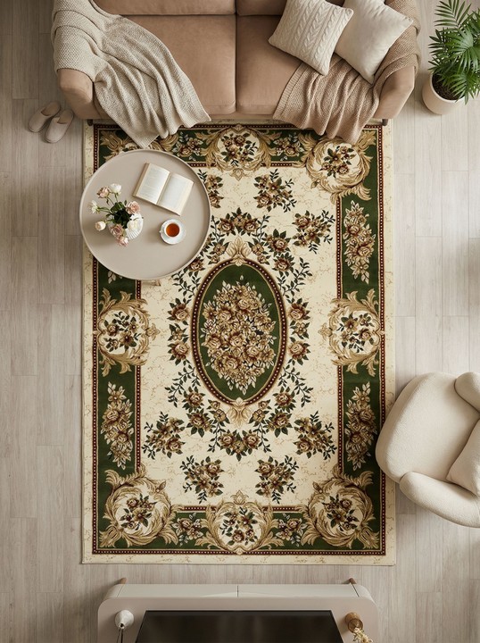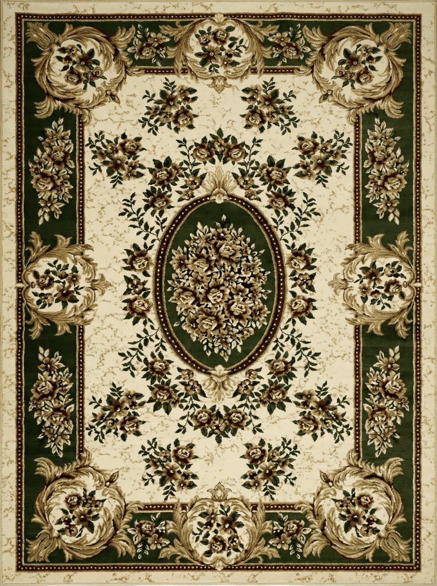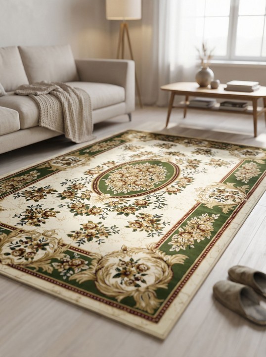 Российский ковер прямой классической формы из линейки Акварель создаст в любой комнате атмосферу тепла и уюта. Зеленый цвет в сочетании с бежевым и красным тоном гармонично впишется современный или даже в классический интерьер. Абстрактный цветочный орнамент с медальоном в центре радует глаз. Средняя плотность плетения 281600 узлов на кв. м. и длина ворса 10 мм обеспечивают отличную износостойкость полотна и четкость рисунка. Краски не выгорают под солнечными лучами. Расположить ковер можно в комнатах с большой проходимостью. А размеры на выбор представлены разнообразные: от 0,8 x 1,5 м до 3 x 5 м. Синтетическое волокно, из которого производится ковер, гипоаллергенно и антистатично. Изделие не боится влаги, в нем не заводится грибок. Безвредно для взрослых и детей.