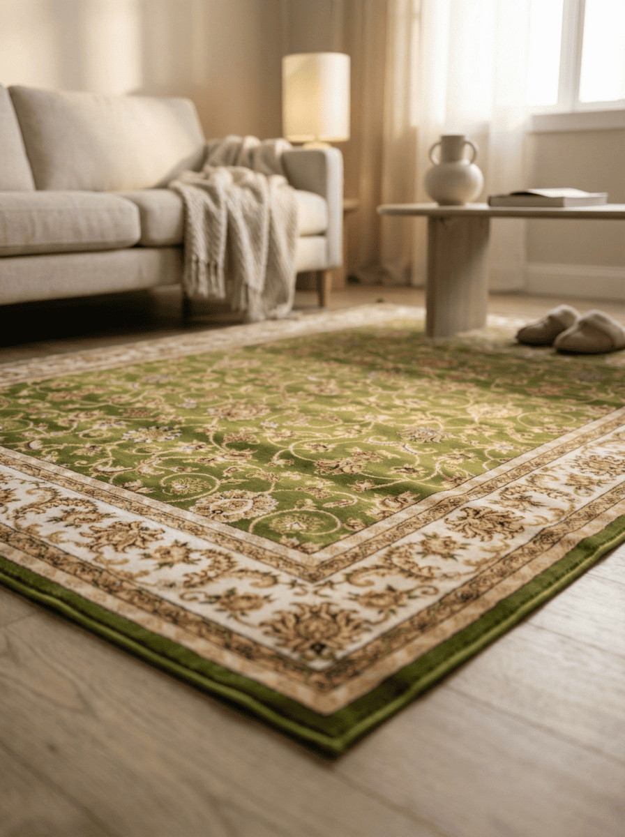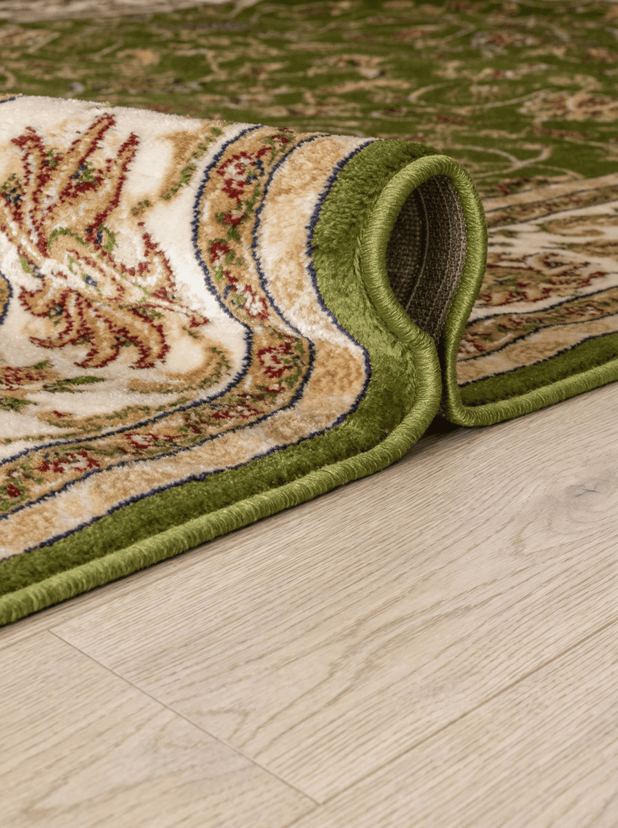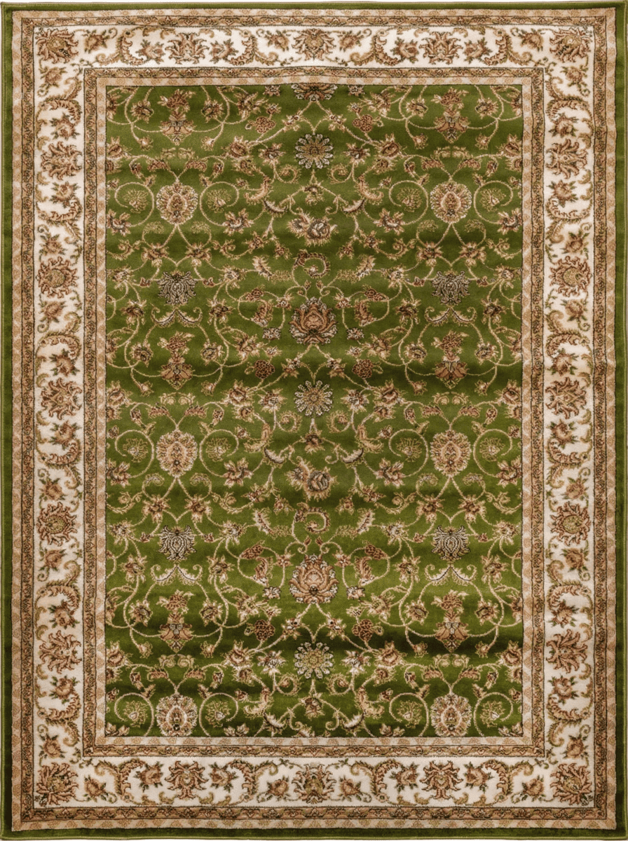 Российский ковер Акварель прямоугольной формы не оставит равнодушным ни одного покупателя. Изделие зеленого цвета с бежевыми витиеватыми узорами выглядит модно и современно. Сверхвысокую прочность обеспечивает плотность плетения 281600 узлов на кв. м. Обработка изделия производится еще до ткачества. Полипропиленовые нити сразу окрашивают в определенный цвет. Благодаря этому четкость и яркость рисунка сохраняются на долгие годы. Такая модель безукоризненно впишется в интерьер. Кроме того, размерный ряд ковра богатый: от 0,6 x 1 м до 3 x 4 м на выбор. Для детской комнаты нет лучше варианта, так как полотно безвредно, не статично, не вызывает аллергических реакций. Ковер отталкивает пыль и грязь, десятимиллиметровые ворсинки на ощупь мягкие и создают гладкую фактуру.