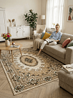 Любителям нежных кремовых тонов подойдет модель российского ковра прямоугольной формы из коллекции Акварель. Это ковровое изделие — настоящее произведение искусства. Цветочный узор создает чувство умиротворения и тепла. Оформить подобным ковром можно каждую комнату в доме. И размеров изделия много: от 0,6 x 1,1 м до 3 x 5 м. Четкая структура узоров и прочность изделия обеспечиваются плотностью плетения 281600 узелков на кв. м. А высококачественный полипропилен в качестве основы изделия не вызывает аллергии. Ковер экологичный и легкий (1 метр квадратный весит 1.65 кг). Ворс длиной 10 мм на ощупь мягкий и гладкий. По такому ковру можно ходить босиком или просто посидеть и отдохнуть. При низких температурах изделие согреет и создаст комфортную атмосферу вокруг.
