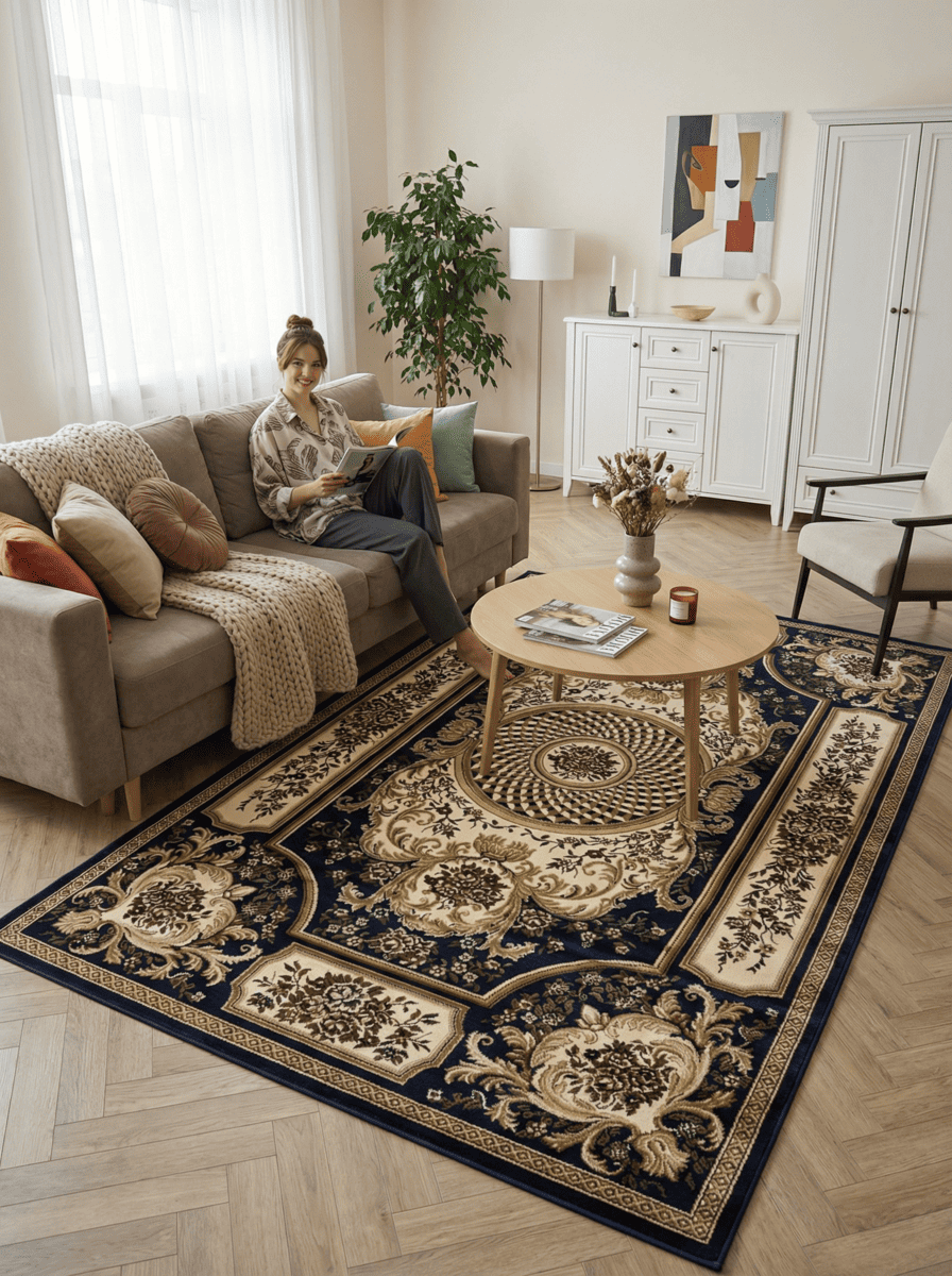При выборе износостойкого ковра стоит остановиться на синей прямой модели из серии Акварель производства Россия. По довольно низкой стоимости покупатель получит шикарное изделие, отличающееся превосходными качествами. Плотность ковра 281600 создает прочность и долговечность полотна. Яркий рисунок с центральным медальоном завораживает и дарит эстетическое наслаждение. Ворс средней длины 10 миллиметров обеспечивает мягкость покрытия и в то же время легкий уход. В нем не накапливается пяль и мусор. Ковер не впитывает влагу, поэтому моль и грибок не грозят. Изделие не вызывает аллергических реакций, не статично и экологично. На таком покрытии дети могут спокойно играть. Полотно полностью безвредно. Первоначальная яркость рисунка сохраняется долгое время. Ворсинки не мнутся и не покрываются катышками, так как ковер создан из высококачественного полипропилена.
